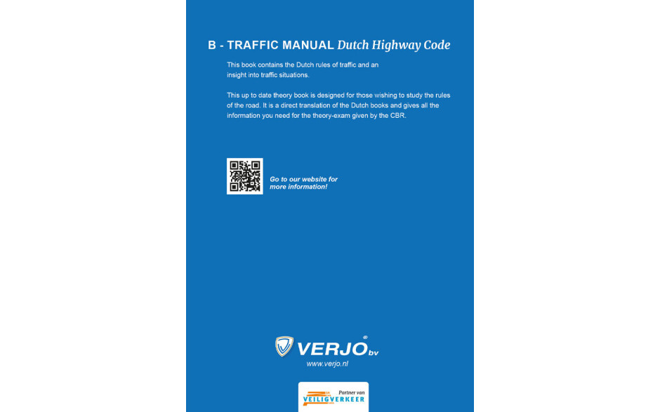 This completely renewed English book contains the traffic rules in the Netherlands, insight into traffic situations, danger recognition (hazard perception) and over 200 study questions.